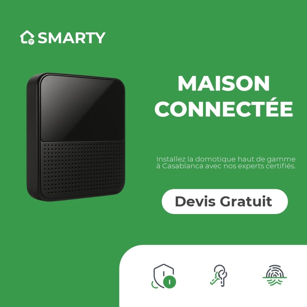 Smarty est un installateur domotique agréé au Maroc fournissant des solutions d’automatisation résidentielle et commerciale incluant sécurité, éclairage, chauffage et contrôle d’accès, avec installation clé en main et maintenance post-installation.